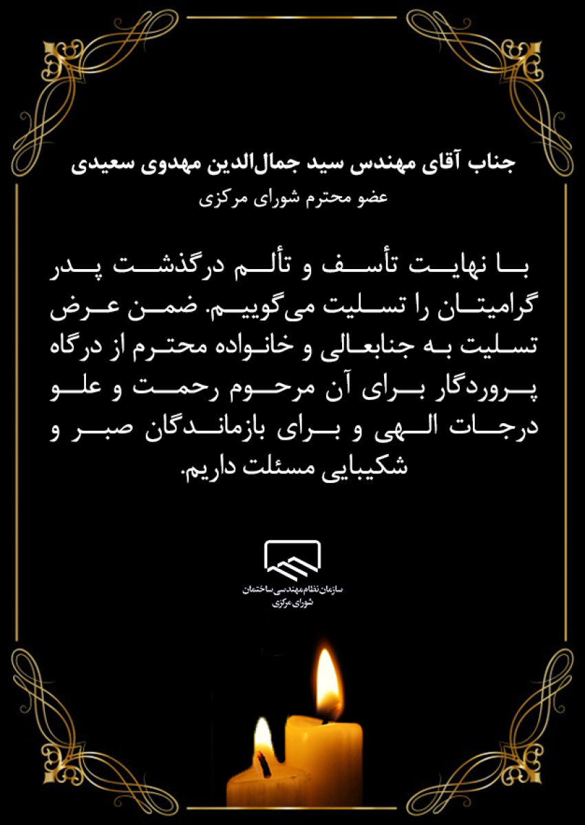 جناب آقای مهندس سید جمالالدین مهدوی سعیدی با نهایت تأسف و تألم درگذشت پدر گرامی جنابعالی را تسلیت میگوییم و ضمن عرض تسلیت به جنابعالی و خانواده محترم از درگاه پروردگار برای آن مرحوم رحمت و علو درجات الهی و برای بازماندگان صبر و شکیبایی مسئلت داریم.